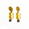 Spektakuläre Ohrringe mit überlappenden Kreisen aus versilbertem Zamak mit einem facettierten Achatdetail in Türkis. Diese Ohrringe lassen sich perfekt mit Ihrem Lieblingslook kombinieren.